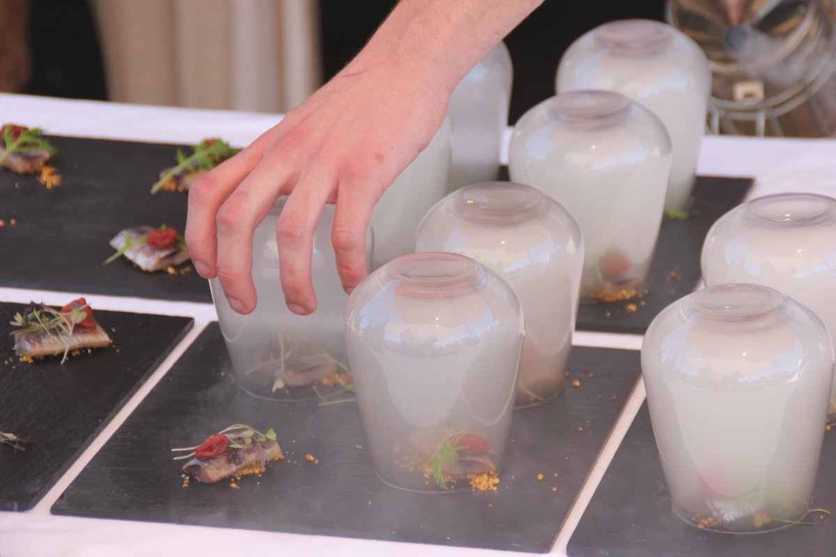 Entre tanto, el cocinero Alejandro Torres nos iba sorprendiendo con pescados con bruma marina, ensalada de tomate marinado con sardina, carpaccio de pulpo al olivo, entre otras exquisiteces. El colofón final lo puso el postre, con una suculenta tarta de almendra con helado artesano de canela.