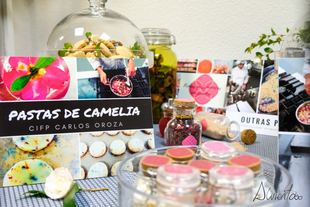 Como te decía, esta vez he vuelto al CIFP Carlos Oroza para asistir a la presentación de su proyecto final de un menú basado en la camelia con el lema “A nosa camelia, tan curiosa como sabrosa”. Estupendas y diferentes elaboraciones salieron de este proyecto, capitaneado por varios de sus profesores, coordinados por las profesoras Tina Otero y Pilar Tallón.