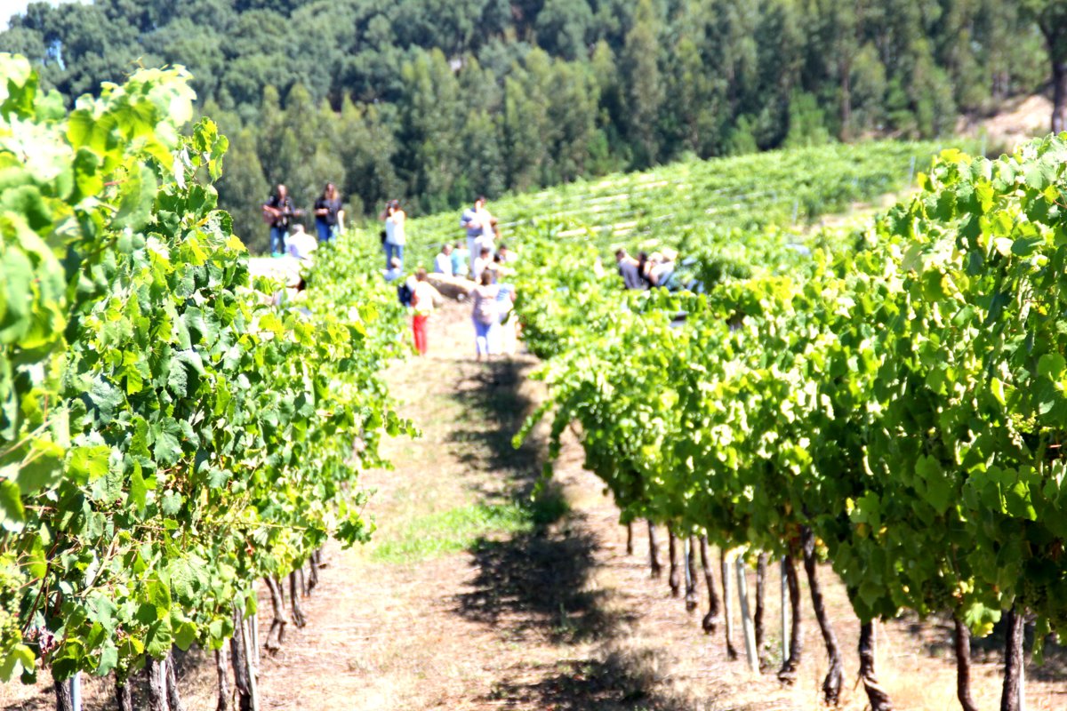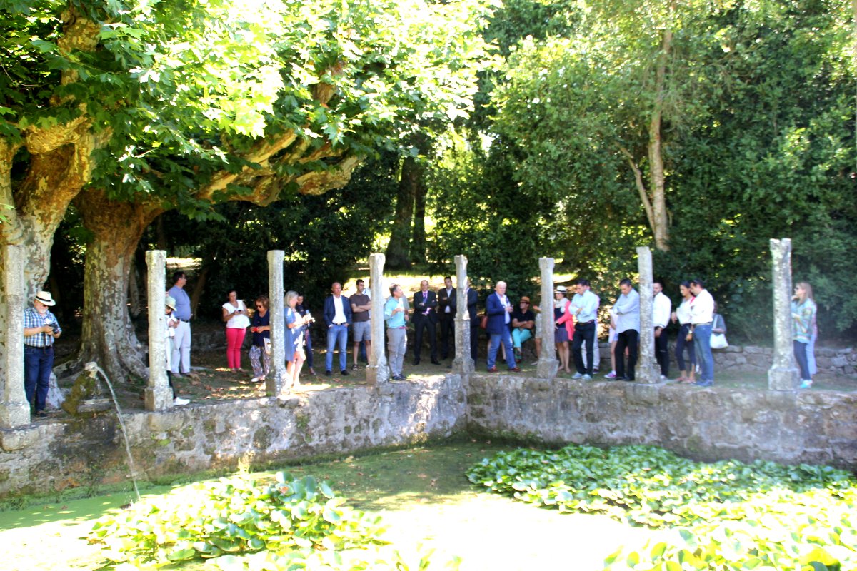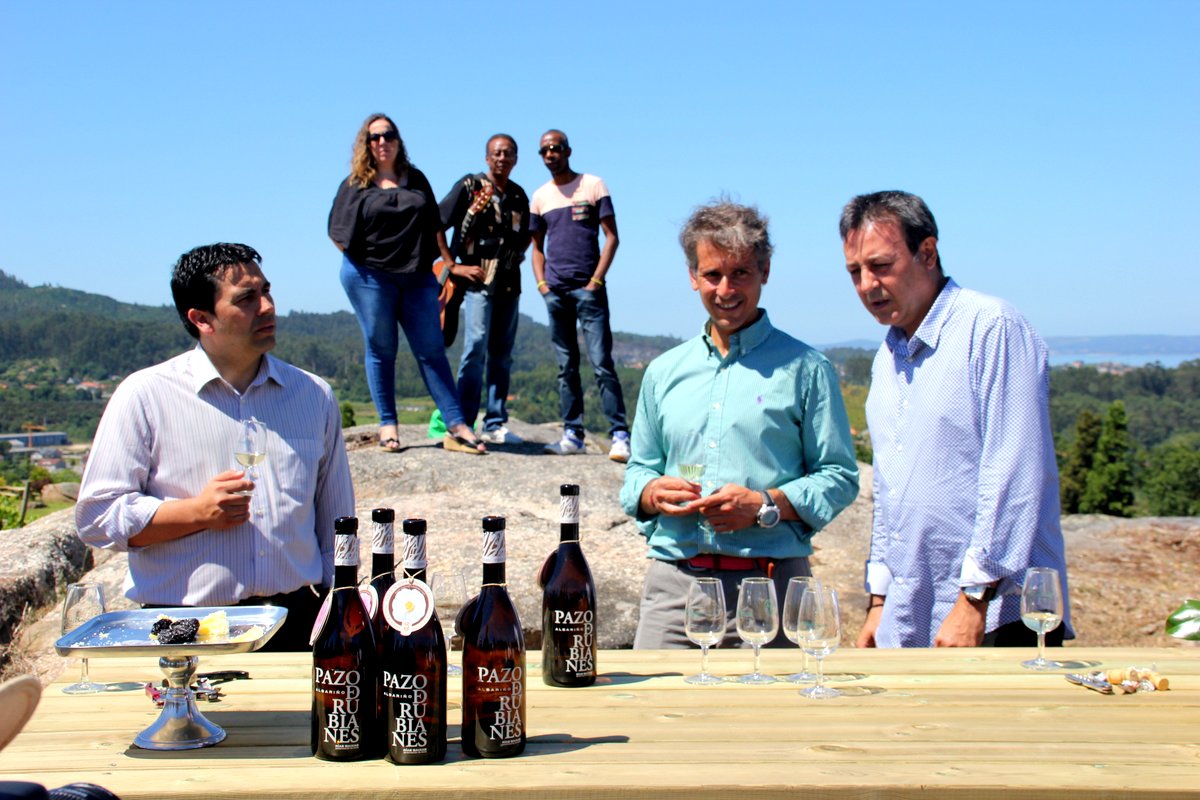 Después de una visita a los jardines del Pazo, fuimos a conocer el viñedo de uva albariña, acompañados por la propietaria del Pazo, Doña Paloma, por el presentador de televisión, Jose Ribadorda, el alcalde de Vilagarcía, Alberto Varela y un buen número de personalidades del mundo de la gastronomía, cultura o deporte.