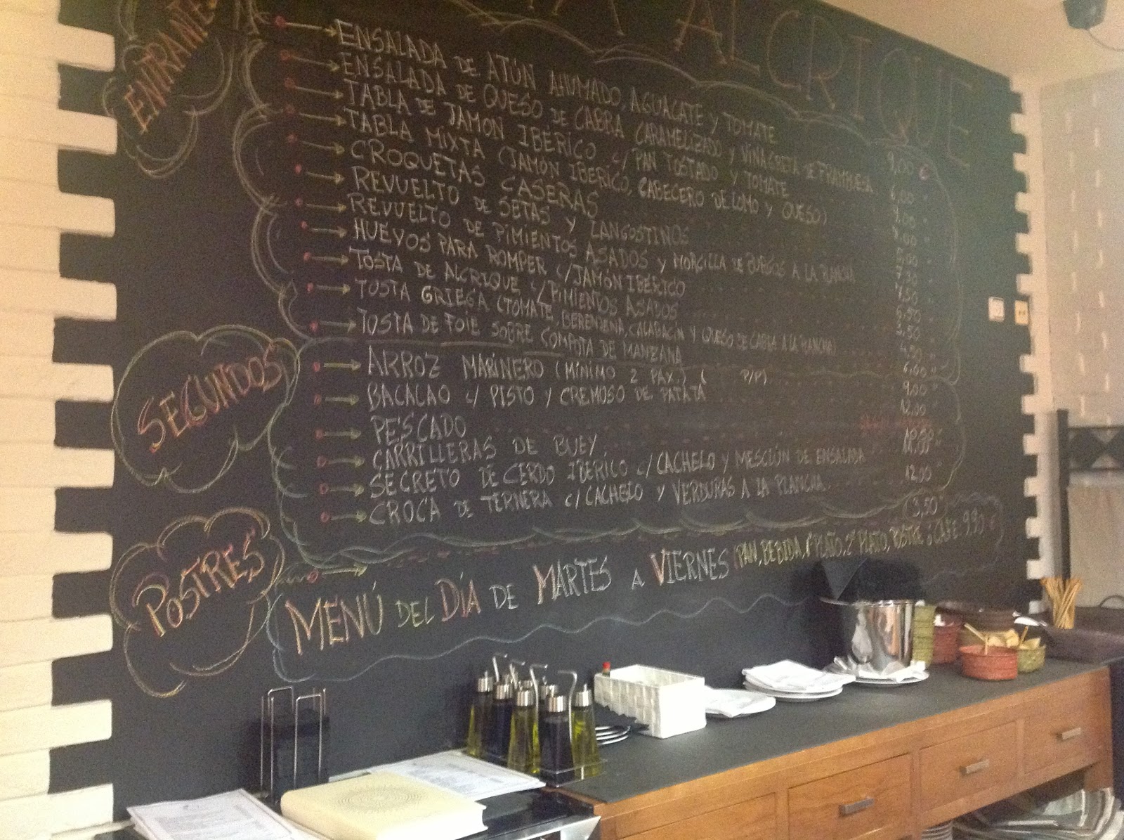 Os enseño tambien la carta que esta escrita en la pared, la decoración esta correcta y el menú del día esta bastante bien de precio, así que como siempre, si vais , ya me contareis como fue.. feliz día